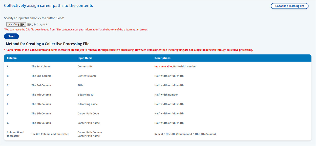 Prepare a CSV file and edit it according to the format to create the bulk processing file.