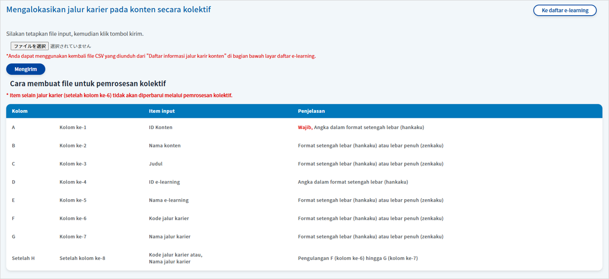 Untuk menetapkan jalur karier ke konten secara massal, ikuti langkah-langkah di bawah ini:
