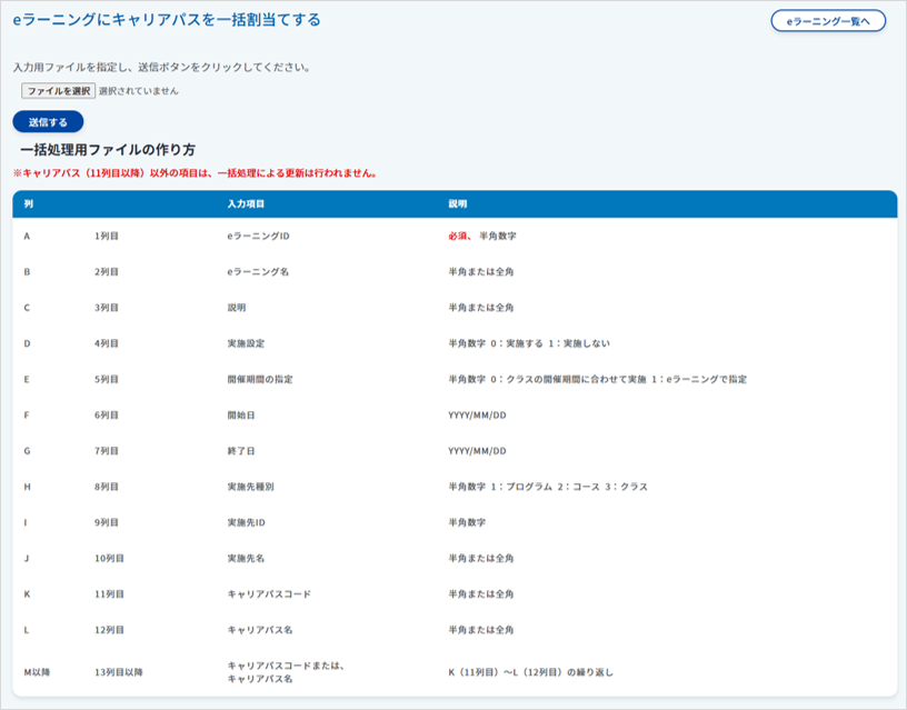 「eラーニングのキャリアパスを一括割当する」をクリックし、キャリアパス一括割当画面を表示します。