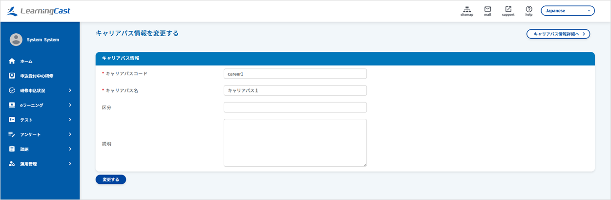 変更内容を入力し、「変更する」ボタンをクリックしてキャリアパスを変更します。