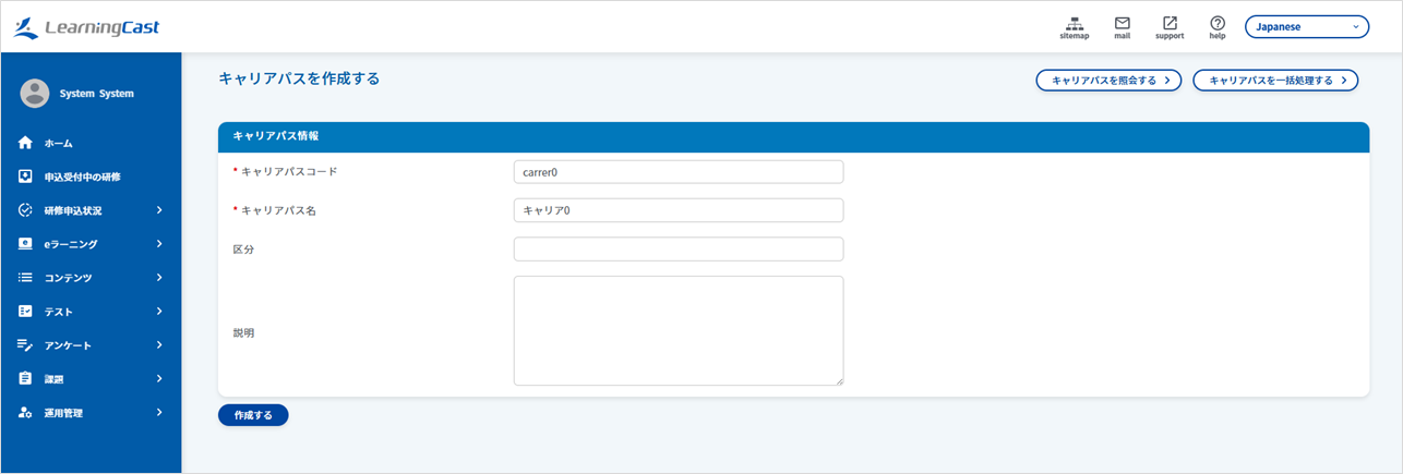 登録内容を入力し、「作成する」ボタンをクリックし、キャリアパスを登録します。