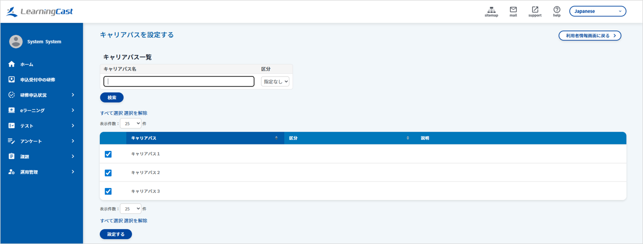 キャリアパスを選択し、「設定する」ボタンをクリックしてキャリアパスを割り当てます。
