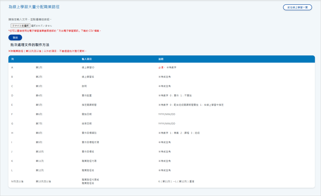 請依照以下步驟批量為線上學習課程分配職業發展路徑。