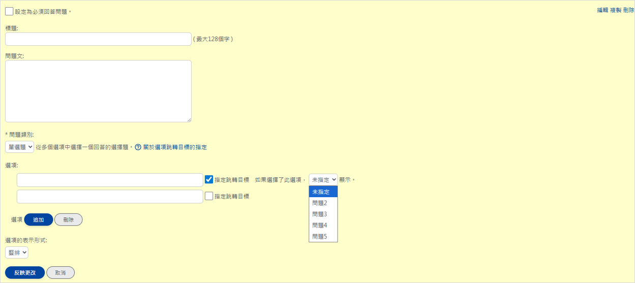 輸入必要事項後,單擊“保存更改部分、轉移到問題編輯畫面”按鈕,顯示問題編輯頁面。