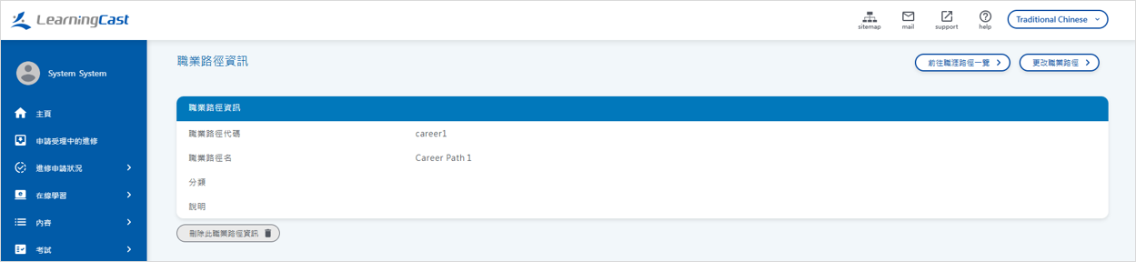 點選「刪除此職涯發展路徑資訊」連結以刪除該職涯發展路徑。
