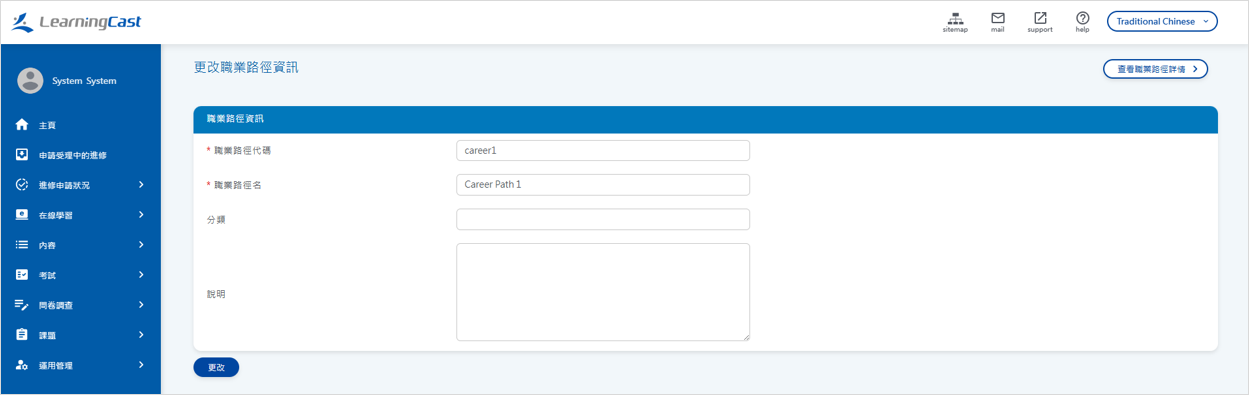 點選選單“營運管理 > 職涯發展路徑 > 註冊”,顯示職涯發展路徑註冊表。